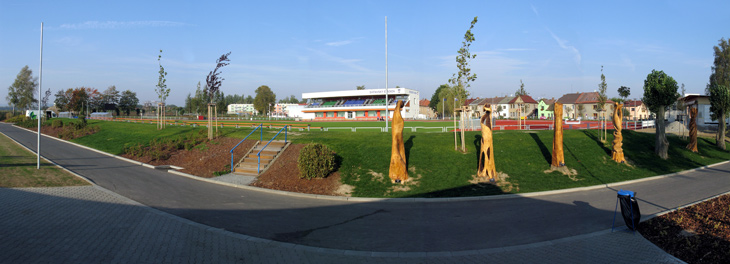 Ke kultuře života ve městě patří také kulturní prostředí, tedy i umělecká díla, která jsou součástí městských ploch. Při asanaci starých stromů byla v areálu stadionu ponechána dvou až třímetrová torza kmenů topolů, která jsou postupně přepracovávána „nastojato“ do rozměrnějších, ze země rostoucích výtvarných artefaktů. Originální plastiky jsou průběžně tématicky dotvářeny na každoročně konaném podzimním plenéru – "Řezbářském memoriálu Aloise Petruse". Výsledek práce renomovaných řezbářů vytváří zcela unikátní soubor uměleckcých děl citlivě doplňujících pohodovou atmosféru volnočasového areálu.
